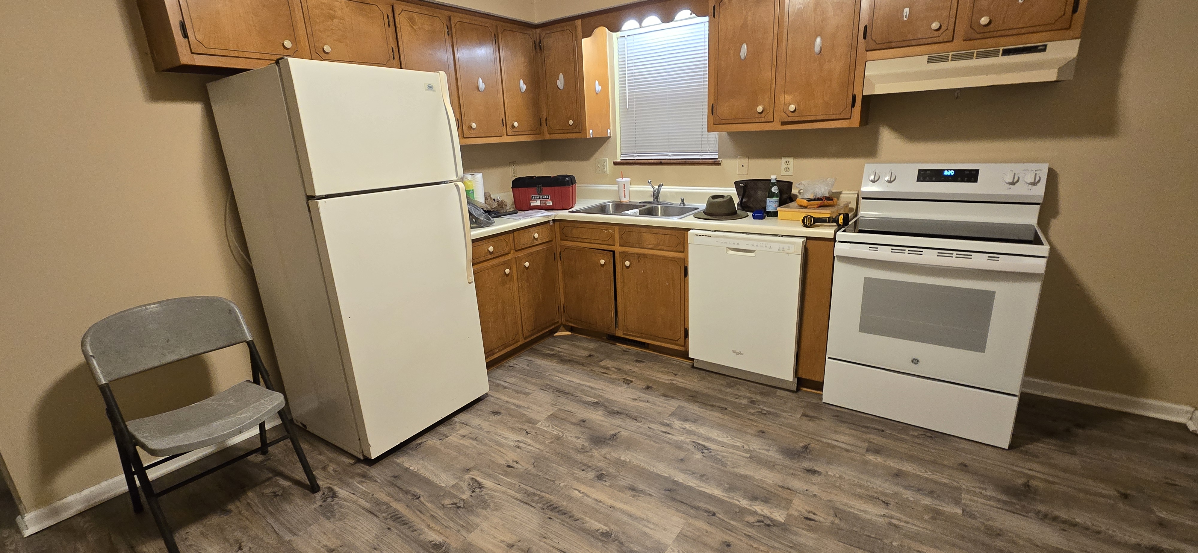 Stove, refer w/ice , and dishwasher furnished. New flooring throughout. New 2 ton heat pump.